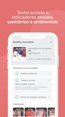 Com DO PASTO AO PRATO, a transparência está ao alcance das suas mãos. Basta inserir o código presente na embalagem do produto que você deseja rastrear. Em instantes, o aplicativo revela informações cruciais sobre o frigorífico responsável pelo processamento da carne, além de apresentar indicadores detalhados associados a todo o percurso produtivo. Essa é a sua oportunidade de compreender melhor o histórico por trás de cada corte, capacitando você a fazer escolhas alinhadas aos seus valores e contribuir para um consumo mais consciente.