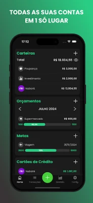 Com Flynow - Finanças Pessoais, a gestão torna-se simplificada. Agrupe todos os seus recursos em "carteiras" digitais personalizáveis, que podem representar desde sua conta bancária principal até aquela poupança secreta ou fundo de emergência, consolidando suas finanças em um único ambiente. Defina orçamentos para cada categoria de gasto, garantindo que você nunca exceda seus limites e esteja sempre no caminho certo para atingir suas metas. Acompanhe o progresso de seus objetivos financeiros, sejam eles a compra de um bem ou a formação de uma reserva, transformando aspirações em realidade através de um acompanhamento visual e detalhado.