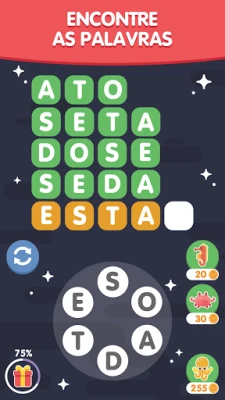 Em Mar de Palavras, uma vastidão de mais de 5000 quebra-cabeças aguarda por você. Sua jornada começa com enigmas mais simples, que gradualmente evoluem para verdadeiros desafios, testando sua maestria com as palavras. O objetivo é claro: desvendar todas as palavras ocultas a partir de um círculo de letras, preenchendo a grade de cada nível. Além de ser um excelente exercício para a concentração, o jogo expande seu léxico e oferece recompensas valiosas, bônus especiais e eventos contínuos para manter a emoção em alta, tudo isso com gráficos limpos que focam na imersão sem distrações e sem limite de tempo.
