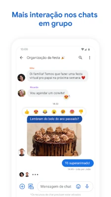 A comunicação moderna exige mais do que apenas o envio de texto. Com Mensagens Google, transforme cada conversa numa experiência vibrante e envolvente. Partilhe os seus momentos com fotos e vídeos de alta resolução que ganham vida no ecrã, e esteja sempre a par com indicadores de escrita em tempo real. Os chats em grupo são mais fluidos e inclusivos, garantindo que todos os seus contactos, inclusive aqueles com um iPhone, participem sem esforço, aproximando amigos e familiares numa única plataforma.