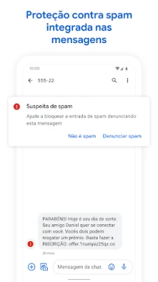 Dê um toque pessoal inconfundível às suas interações. Com Mensagens Google, explore a liberdade de personalizar as suas bolhas de chat com cores à sua escolha e adicione um toque de diversão com GIFs de selfie criativos que expressam a sua personalidade única. Além da expressão, a sua privacidade é a nossa prioridade. Tenha a certeza de que as suas conversas mais íntimas estão salvaguardadas com encriptação ponto a ponto entre os utilizadores da app Mensagens Google, garantindo que apenas você e o seu destinatário possam aceder ao conteúdo. Adicionalmente, uma proteção avançada contra spam atua como um escudo, mantendo a sua caixa de entrada limpa e segura.