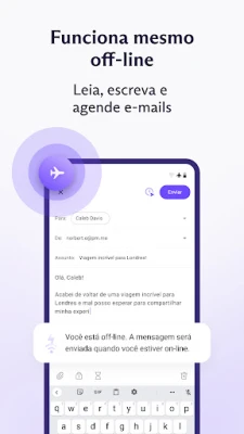 A experiência com o Proton Mail é tão intuitiva quanto segura. Crie instantaneamente seu endereço exclusivo @proton.me ou @protonmail.com e desfrute da simplicidade de enviar e receber mensagens e anexos totalmente criptografados. Gerencie múltiplas contas do Proton Mail com fluidez, organizando sua caixa de entrada sem esforço através de pastas, marcadores e gestos de deslizar ágeis. Receba notificações em tempo real, use o modo escuro para um conforto visual e envie e-mails com proteção por senha para qualquer contato, estendendo a segurança para além do ecossistema Proton Mail. Tudo projetado para que sua atenção se volte apenas para o que realmente importa: suas comunicações.