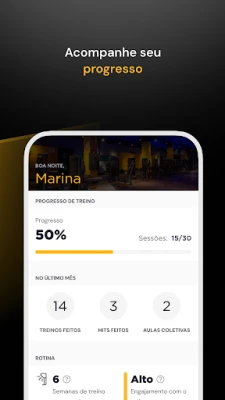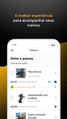 Desfrute de um plano de exercícios feito sob medida para você. Com base em um questionário detalhado (anamnese), o Smart Fit App personaliza seu treino, entregando diretrizes claras de carga, repetições e orientações valiosas para otimizar sua performance. Execute cada movimento com segurança e precisão, graças a uma extensa biblioteca de vídeos explicativos para todos os exercícios, que demonstram a forma correta e auxiliam na identificação do equipamento. Acompanhe sua evolução corporal de perto, registrando suas cargas, adicionando comentários e visualizando seu progresso através de gráficos e estatísticas intuitivas, o que facilita ajustes e acelera a chegada aos seus resultados.